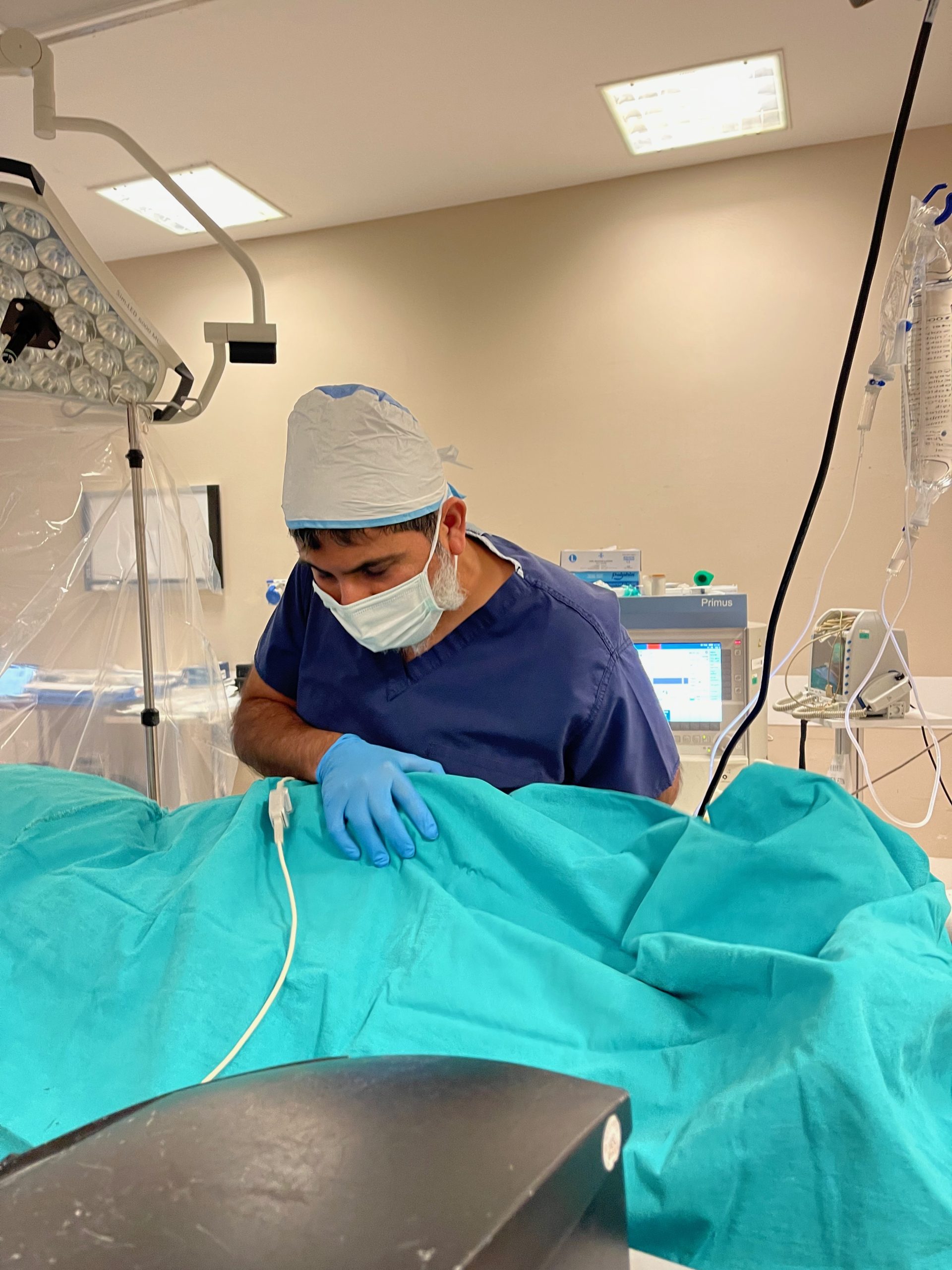 Under local anesthetic, Dr. Bajwa maps exact brain regions using advanced neurophysiological tools to implant tiny electrodes into those specific brain locations. The patient may be awake so that real-time input can be used to ensure proper placement and optimal tremor control.
